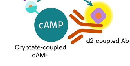 Based on HTRF™, a reliable technology, the cAMP Gi assay contains all the reagents needed to quantify cAMP, ensuring that you benefit from a complete tool for your needs. This kit is based on a competition between native cAMP produced by cells and cAMP labeled with the cryptate for binding to a d2 labeled antibody.